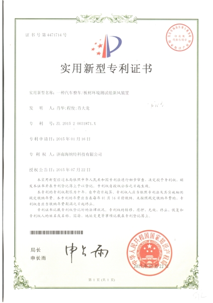 - 一種汽車整車/板材環(huán)境測試艙新風(fēng)裝置